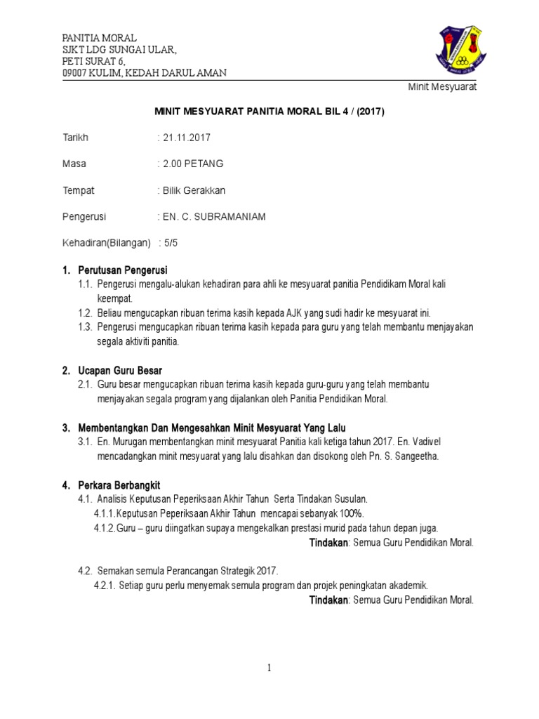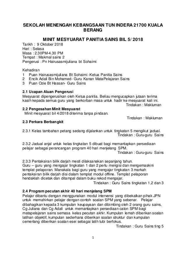 Minit Mesyuarat Panitia Muzik Kali 2 Pdf