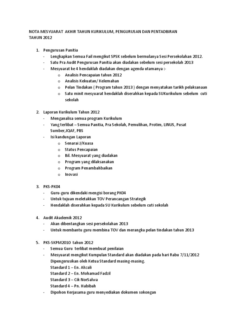 Nota Mesyuarat Akhir Tahun Kurikulum Pdf