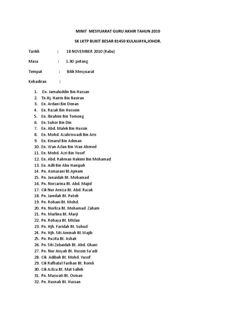 Minit Mesyuarat Guru Akhir Tahun 2010 Pdf